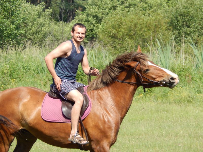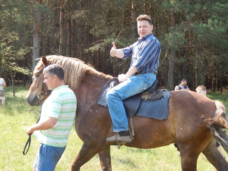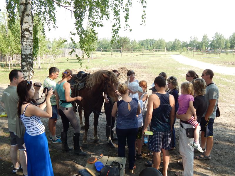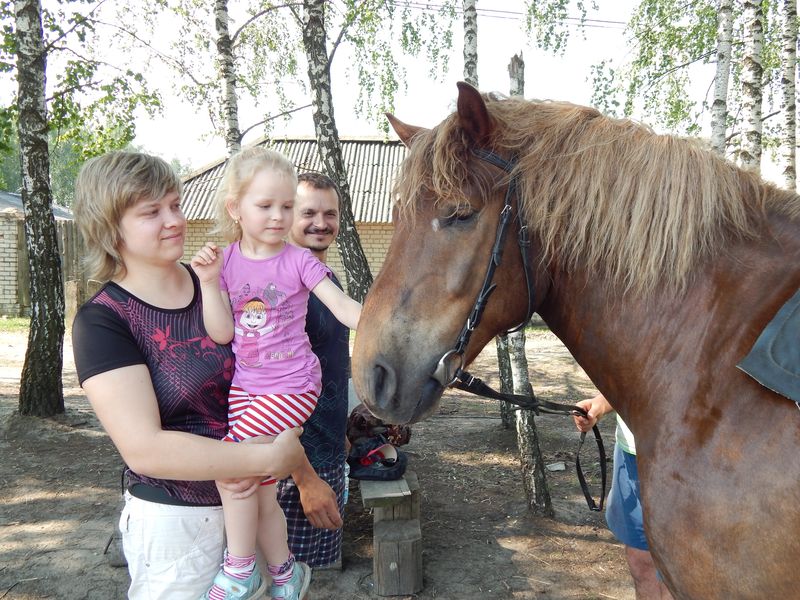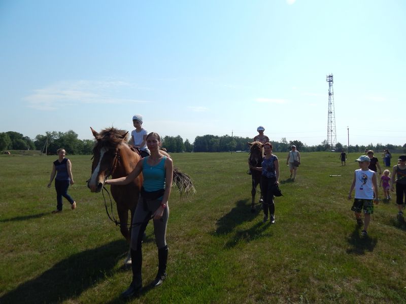 После проведения первоначального экскурса в конный мир, юных всадников одного за другим начали катать на лошадях. Для всех из присутствующих эта верховая прогулка была первой в жизни и эмоции захлёстывали детские лица. Не только детям в этот день удалось прокатиться верхом на лошадках. Родители, сопровождающие своих детей, не удержались и тоже проехались кружок другой. Оказалось, что некоторые родители не плохо держутся в седле и даже умеют ездить рысью.