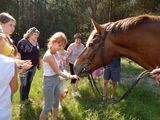 По окончанию верховой прогулки дети кормили Ласточку и Миро сахаром и сладкой марковкой, а затем были приглашены к сладкому столу с чаем.