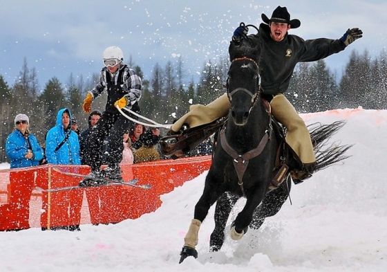 Чемпионат мира, который проводится ежегодно в США, в этом году может похвастаться нешуточным призовым фондом в 20000 долларов и большим количество участников: как женщин, так и мужчин. Это динамичное, яркое зрелище неизменно пользуется популярностью публики. Каждый участник чемпионата – это своеобразное трио, состоящее из лыжника, лошади и ее всадника.