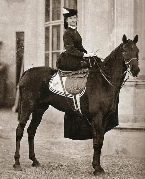 К завершению 18 в., в моде были псовые охоты, в которых участвовали дамы. Это были своего рода показные выезды, ведь женщины не участвовали в гоне, они только сопровождали мужчин. Но благодаря императрице Елизавете, которая просто обожала наравне с мужчинами преследовать добычу, были придуманы и вошли в моду седла с безопасным стременем.