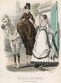 В начале 18 в. появились первые книги о дамской езде, написанные французскими и итальянскими учителями, но до середины века в дамской езде ничего не изменилось. В 1830 году известный конник-француз Шарль Пелье изобрел нижнюю луку, привинчивающуюся к седлу и повторяющую изгиб левой ноги всадницы. Именно это усовершенствование сделало седло наиболее безопасным и позволило дамам легче преодолевать препятствия.