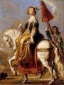 Вторая верхняя лука была изобретена во времена Екатерины Медичи (1580 г.), которая была страстной поклонницей охоты и верховой езды. Теперь дама могла перекинуть свою правую ногу через одну из верхних лук, а вторая поддерживала эту же ногу справа, что сделало дамскую езду более безопасной. Стоит ли рассказывать, что седла и сбруя лошадей, принадлежащих великосветским дамам, были очень богато украшены бархатом и серебром.