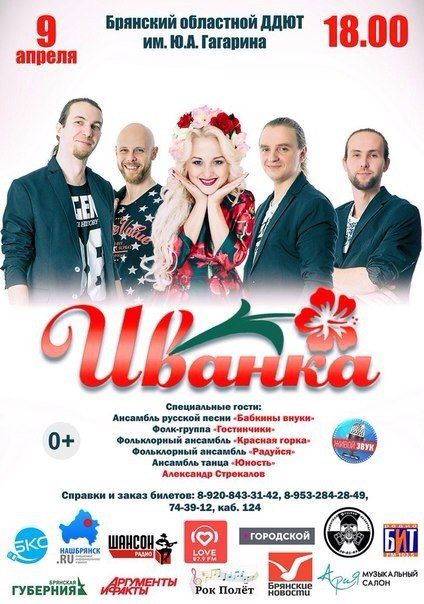 9 апреля в 18.00 в Брянском областном ДДЮТ им. Ю.А. Гагарина пройдет большой сольный концерт группы "Иванка".